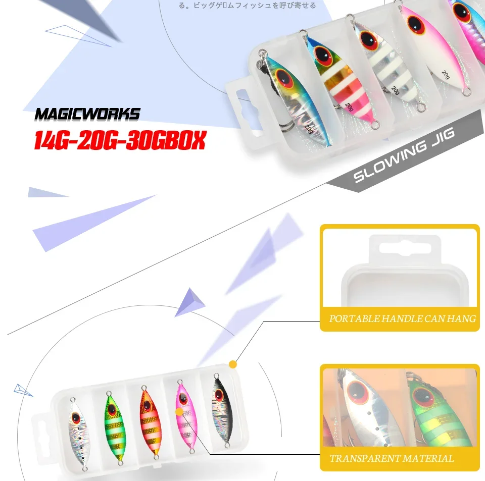 Magic Works Señuelo de Metal 14G 20G 30G Juego de Pesca en el Mar Kit de Cebo Artificial Aparejos de Pesca Profesional Lento Jig Señuelos de Agua Salada