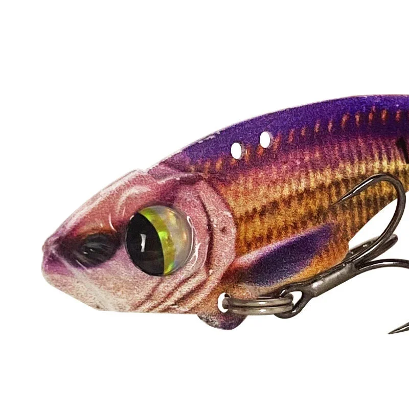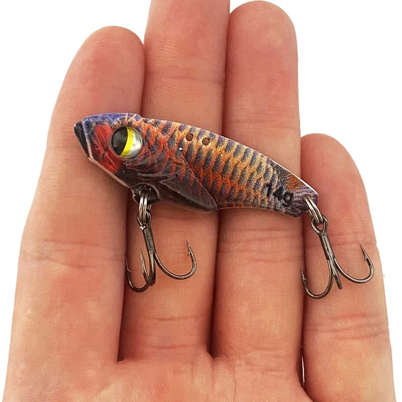 Señuelo de Metal con ojos 3d, 1 piezas, 4,5 cm, 10g, señuelo de hoja Vib que se hunde, cebos de vibración artificiales para lucio, perca, aparejos de Pesca, Swimbait