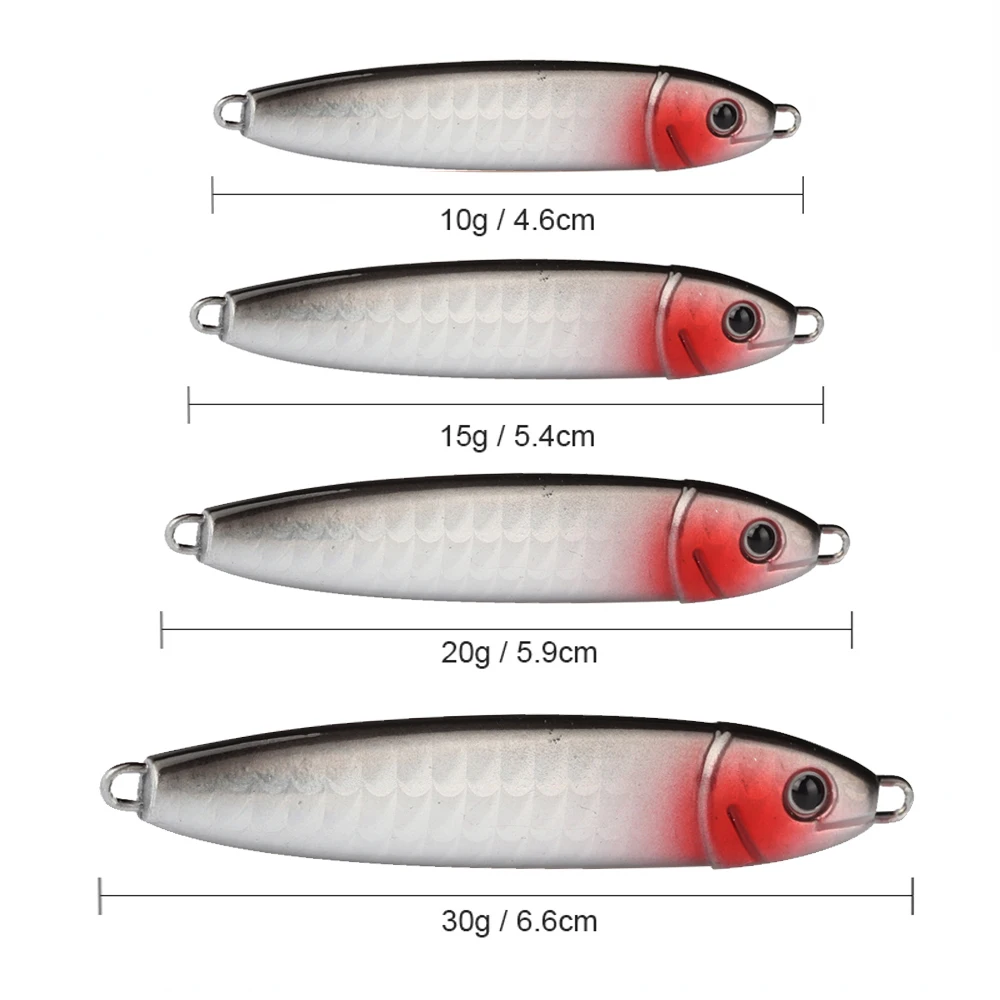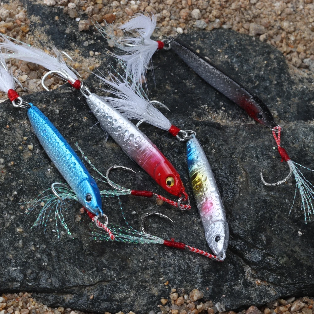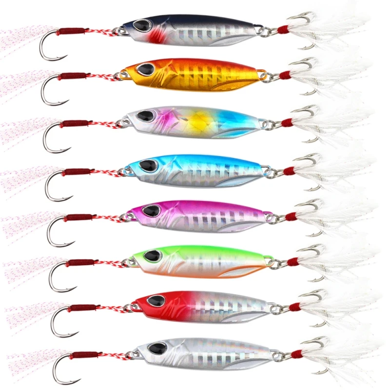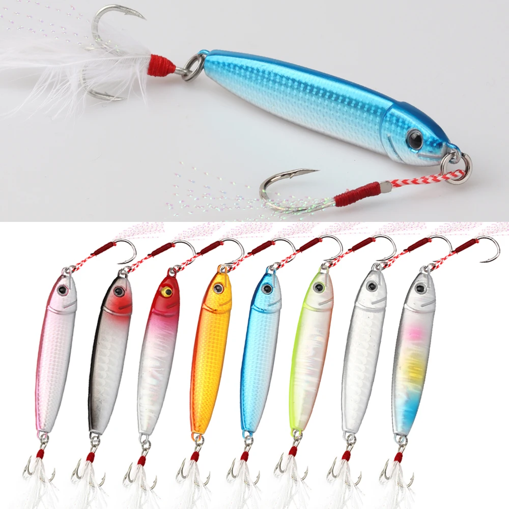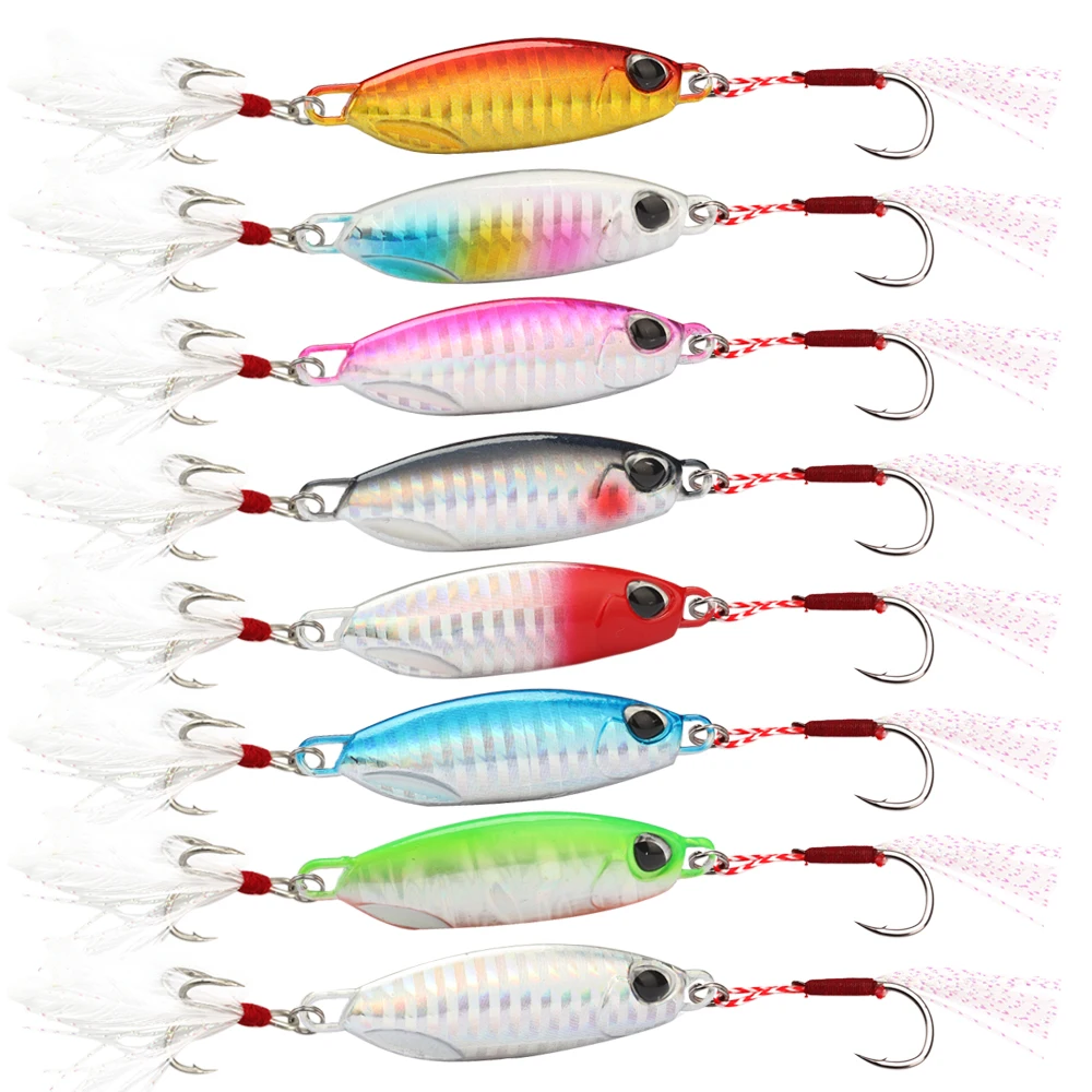 8 Uds Plantilla de metal cuchara de pesca señuelo 8 colores artificiales Metal Jig señuelo rebanada Jigbait cuchara anzuelo triple jigging