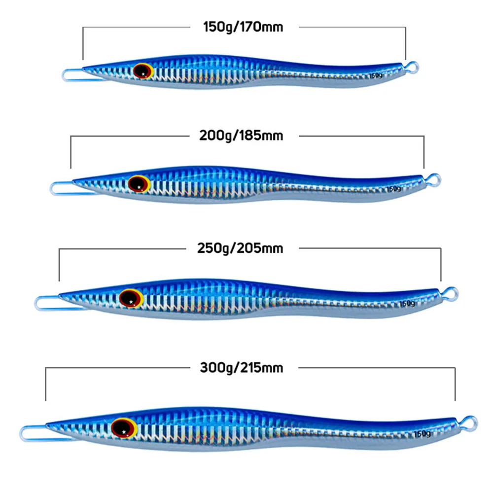 Señuelo de Metal para pesca en agua salada, anzuelo Vertical de 150G-300G para Jigging de orilla, 3D, cuchara para lubina, cebo para trucha, atún Mahi Marlin Wahoo