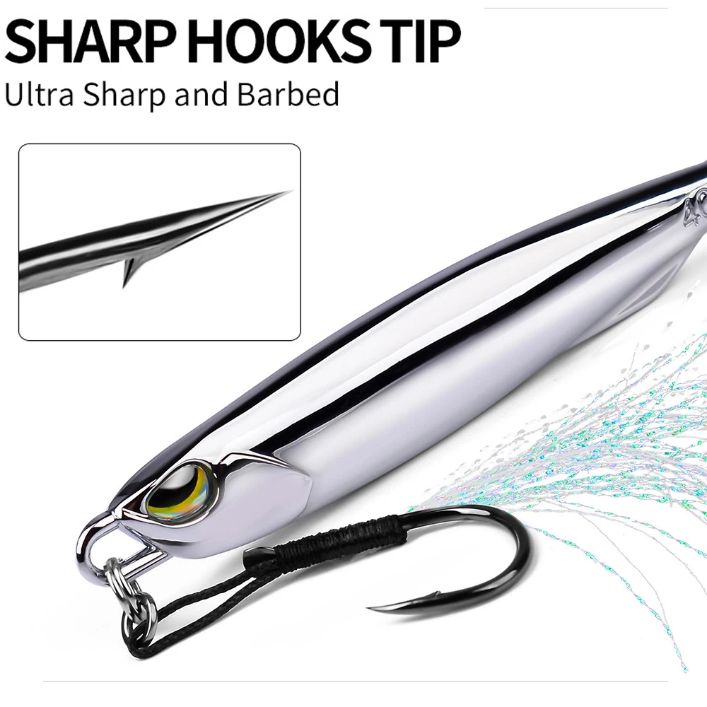 Señuelo de Metal para pesca en el mar, anzuelo de caballa brillante de 15g, 20g, 30g, 40g, 3D, ojos realistas