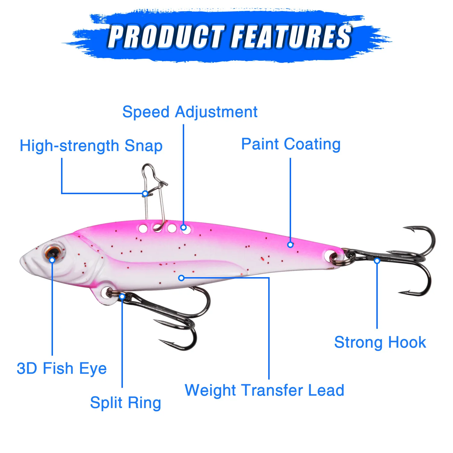 5. Los cebos con cuchilla giratoria dura Metal VIB son ideales para presentaciones en aguas profundas o verticales. ideal para apuntar a truchas, oradas, escamas, panfish, perca, lubina de boca pequeña, cabeza plana y más; Adecuado para la mayoría de las especies de peces, realmente un señuelo práctico para usted.