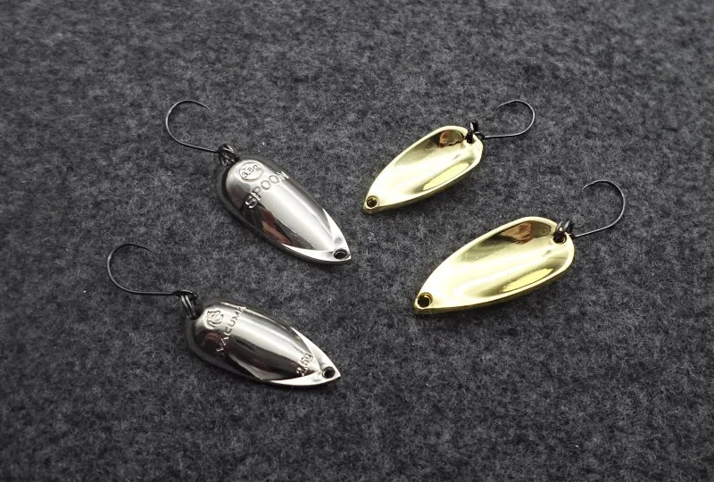 Señuelo de pesca, cucharas de cobre, señuelos de Metal artificiales, cebo duro de 3cm, 2,7g, aparejos de pesca de un solo gancho, lote de 5 piezas en oferta