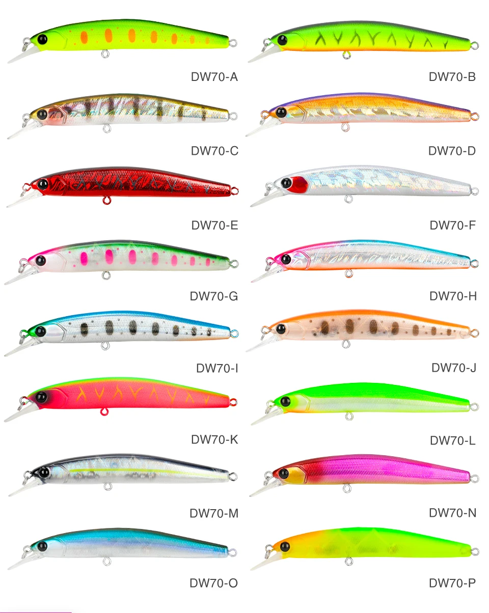Tecnología Avanzada: El DW70 es el jerkbait de próxima generación diseñado específicamente para desencadenar golpes y mejorar su experiencia de pesca.