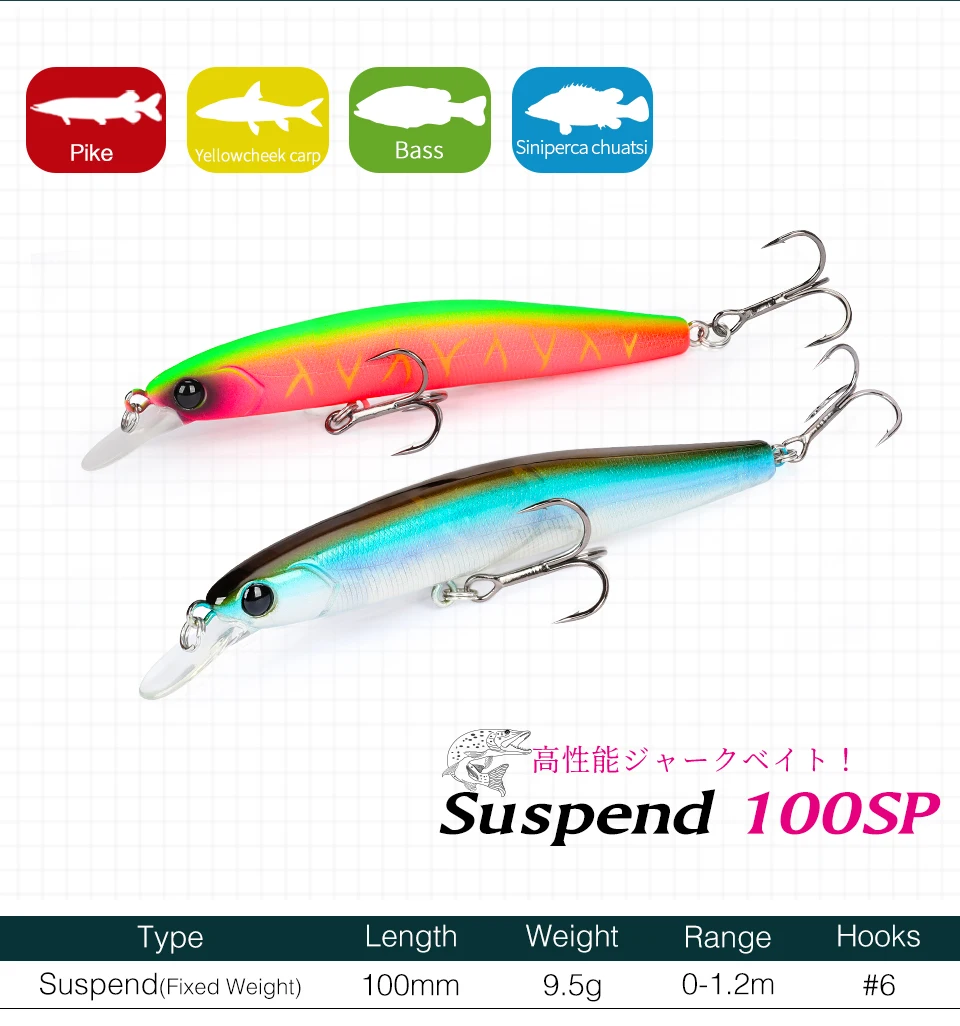 TSURINOYA 100SP señuelo de pesca Minnow suspendido DW70 100mm 9.5g Jerkbait Lucio Bass Crankbait Wobbler cebo duro equipo de pesca
