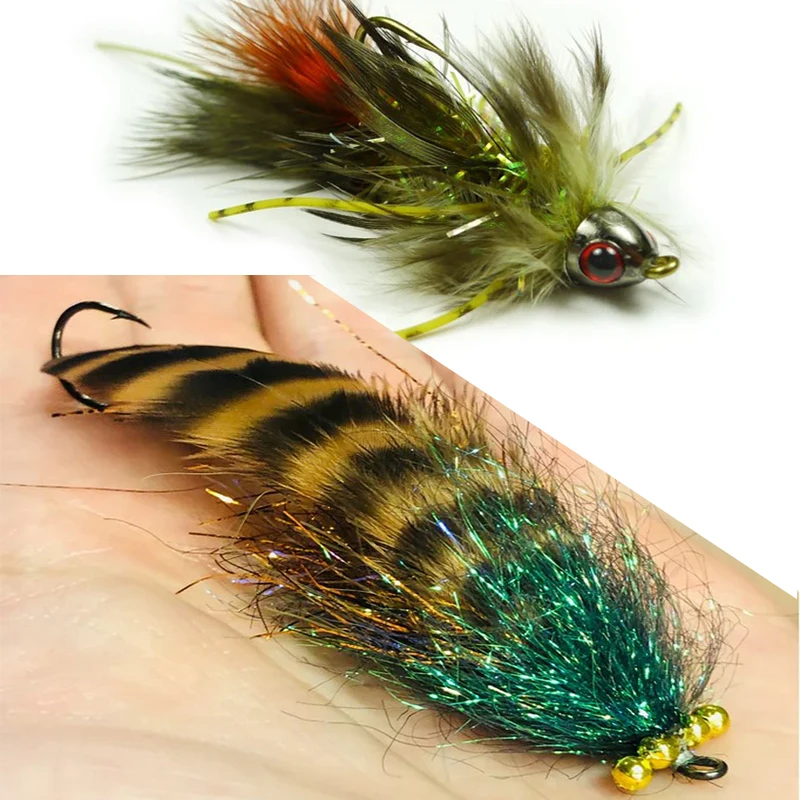 Atado de moscas de primera calidad, hackle suave con pluma de chickabou, perfecto, sin sillín de gallina suave y surtido de plumas de marabú Grizzly Wooly Bugger