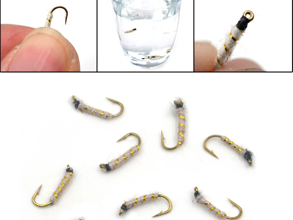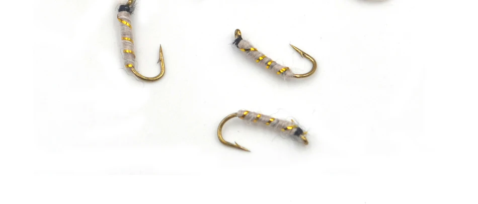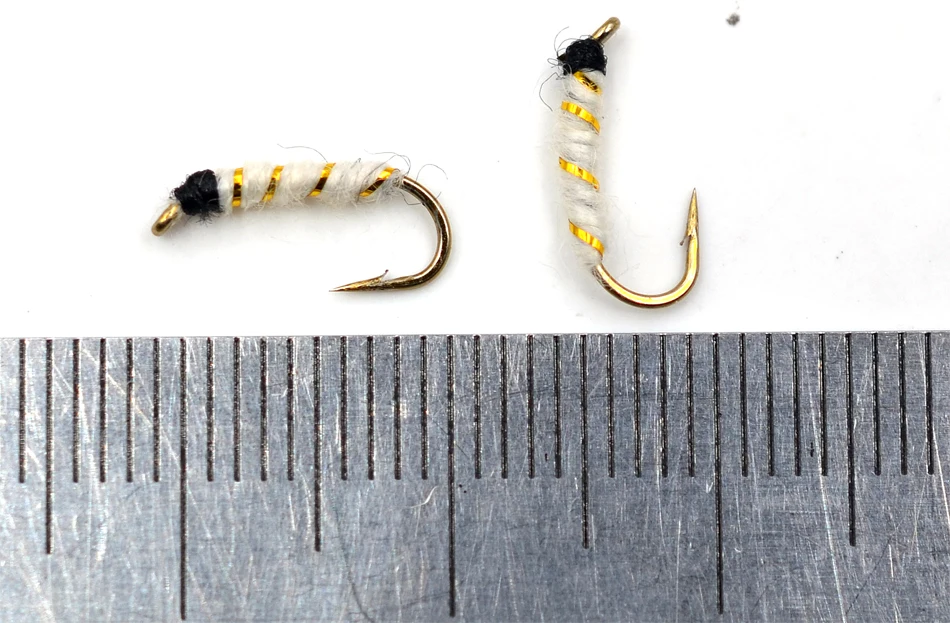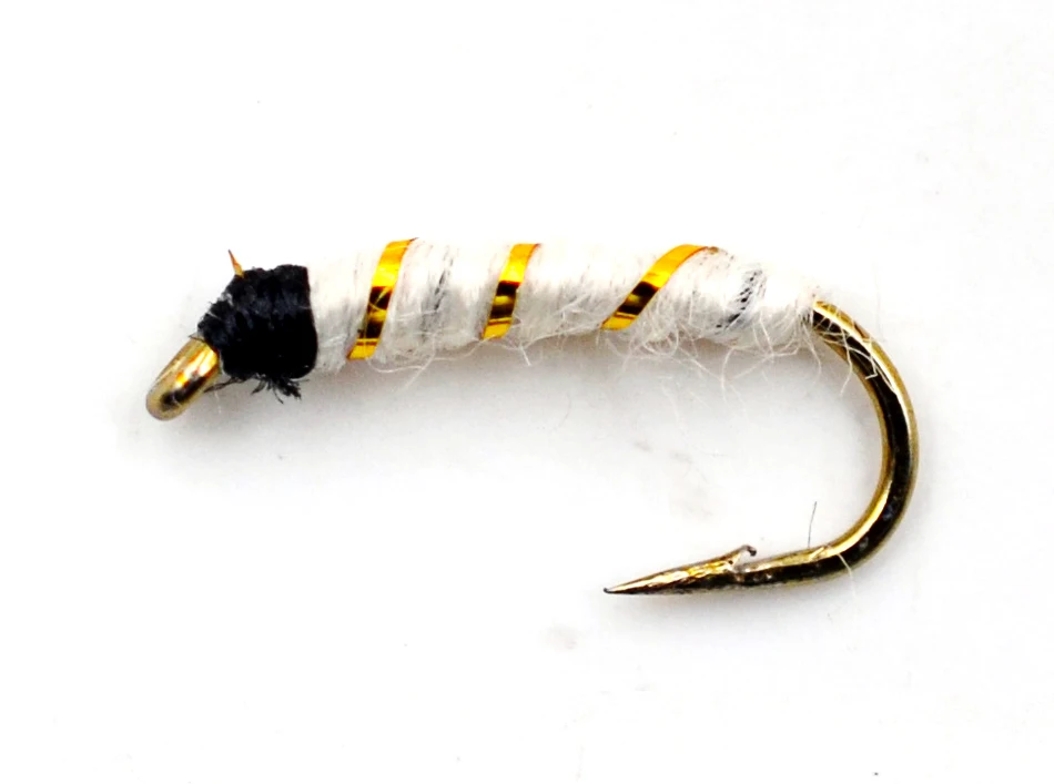 Señuelo de ninfa de pesca MNFT 10PCS 14 # Señuelos de moscas húmedas de Pupa de cebra blanca, cebos de pesca con mosca
