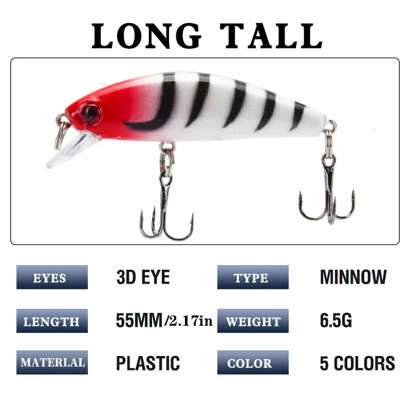 Señuelo de pececillo de 55mm y 6g, cebo Artificial de Pesca hundido, Wobbler de plástico duro, Pesca, trucha, lubina, 1 ud.