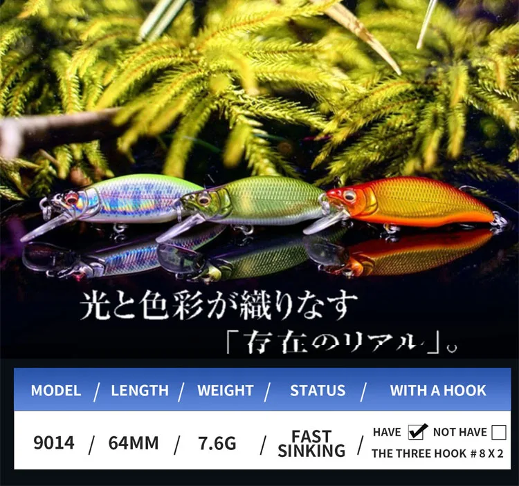 Señuelo de Pececillo para Pesca, Cebo Duro para Lubina, Trucha, Aparejos de Pesca, 7,6G, 64mm, 9014G,