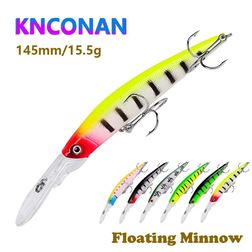 Señuelo de pececillo flotante Trolling, 145mm, 15,5g, labio largo, trucha de agua de mar, cebo Artificial, buceo, Swimbait, Pesca, suministros de regalo