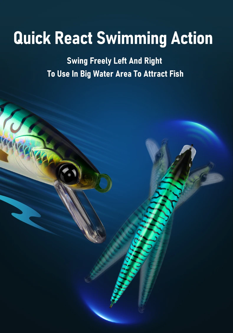 ●Equipado con anzuelos triples reforzados 3X afilados y un diseño de púas anti-lanzamiento, garantiza una penetración sólida y anzuelos seguros, convirtiendo cada bocado en una captura aterrificada.
