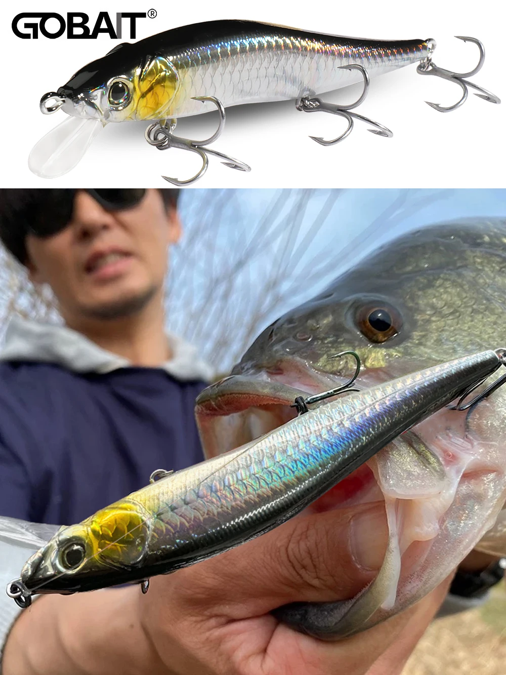 GOBAIT señuelo de pesca minnow aparejos anzuelo mar kit Excelente efecto de reflexión Jerk cebo herramienta de fundición larga spinning Fish Eater trucha pesca Pike Popper carpa profesional piel holográfica excelente pez real vívidamente 3D fuerza del dolor anzuelos triples Chapado en láser cebo artificial