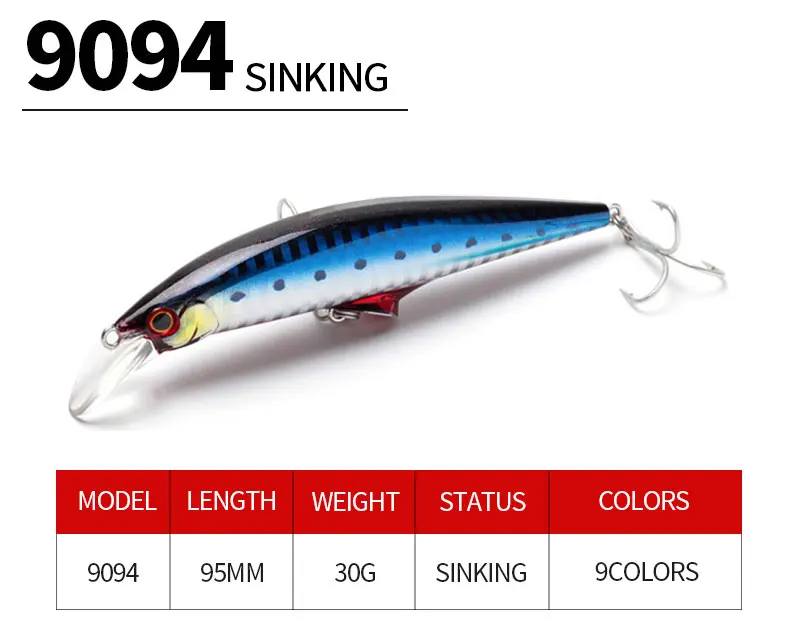 un señuelo más pesado cerca del artista, mejor para lanzar lejos pero requiere más velocidad para activarse. El acabado no está a la altura de otras marcas en Aliexpress, la pintura es menos brillante y el ensamblaje no es perfecto.