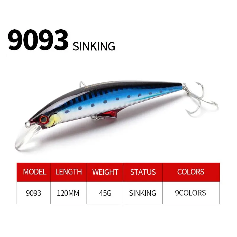 1 Uds. Señuelo de pesca de pececillo pesado de 120mm 45g, señuelo de lubina y trucha de agua de mar para pescar, cebo de pesca Isca de lanzamiento largo 9093