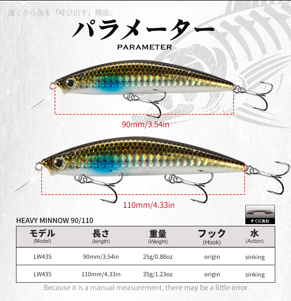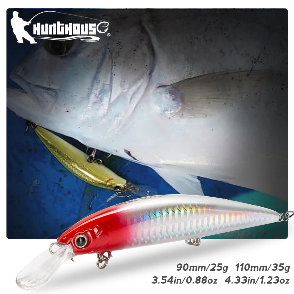 Hunthouse hundimiento Minnow señuelo 90/110mm 25/35g agua salada pesado Minnow cebo Fondo rápido hundimiento aparejos de pesca para lubina
