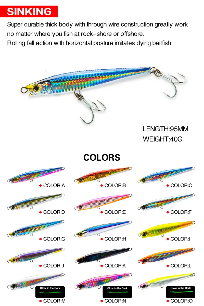Señuelo de pececillo de hundimiento pesado, 38g, 95mm, tiro largo, cebo duro Artificial para lubina, trucha, Jerkbait, Swimbait, suministros de pesca