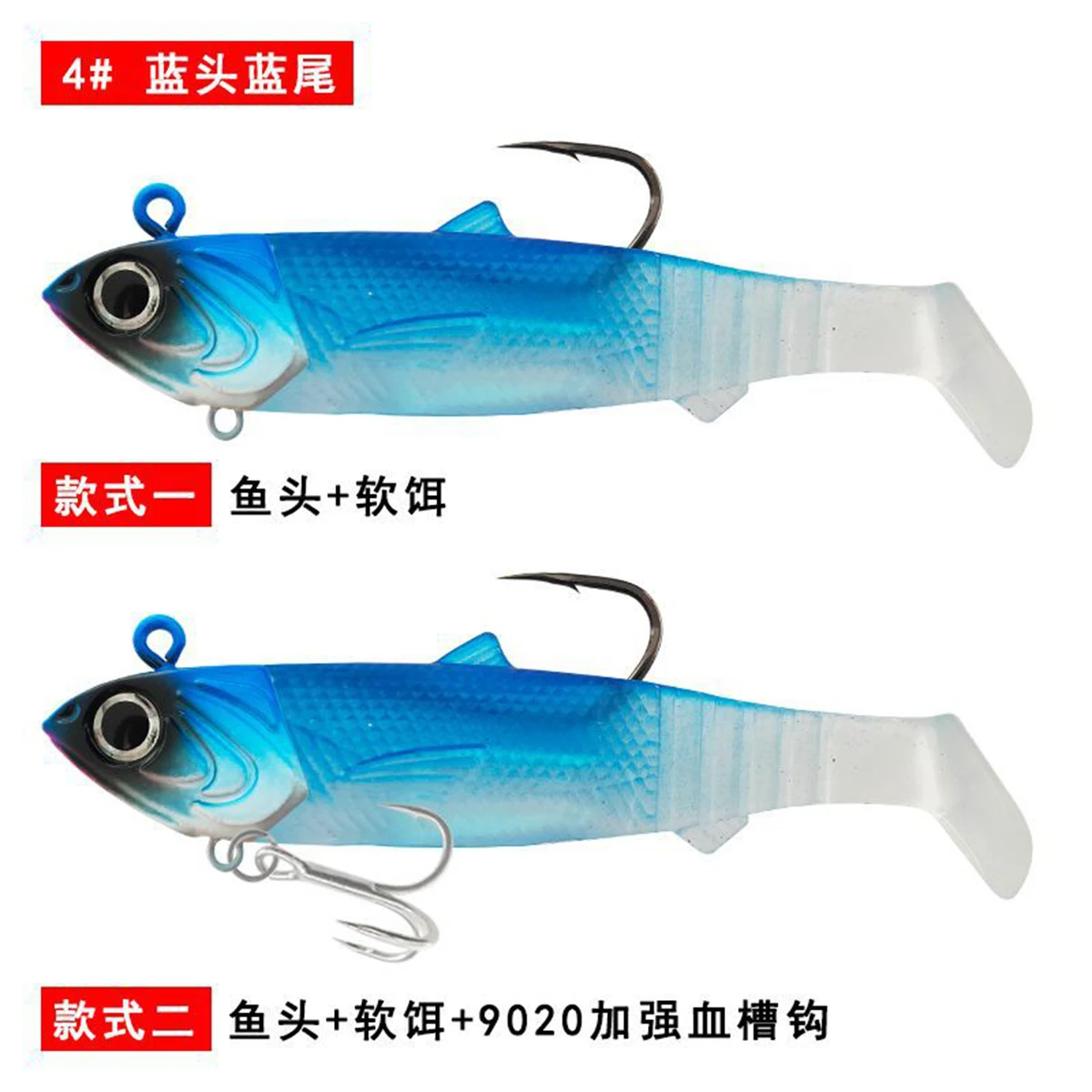 Señuelos de pesca suaves de PVC con cabeza de plantilla de 35g45g, cebos artificiales, cola en T, cebo suave de silicona, Wobblers, anzuelo de pesca de lubina