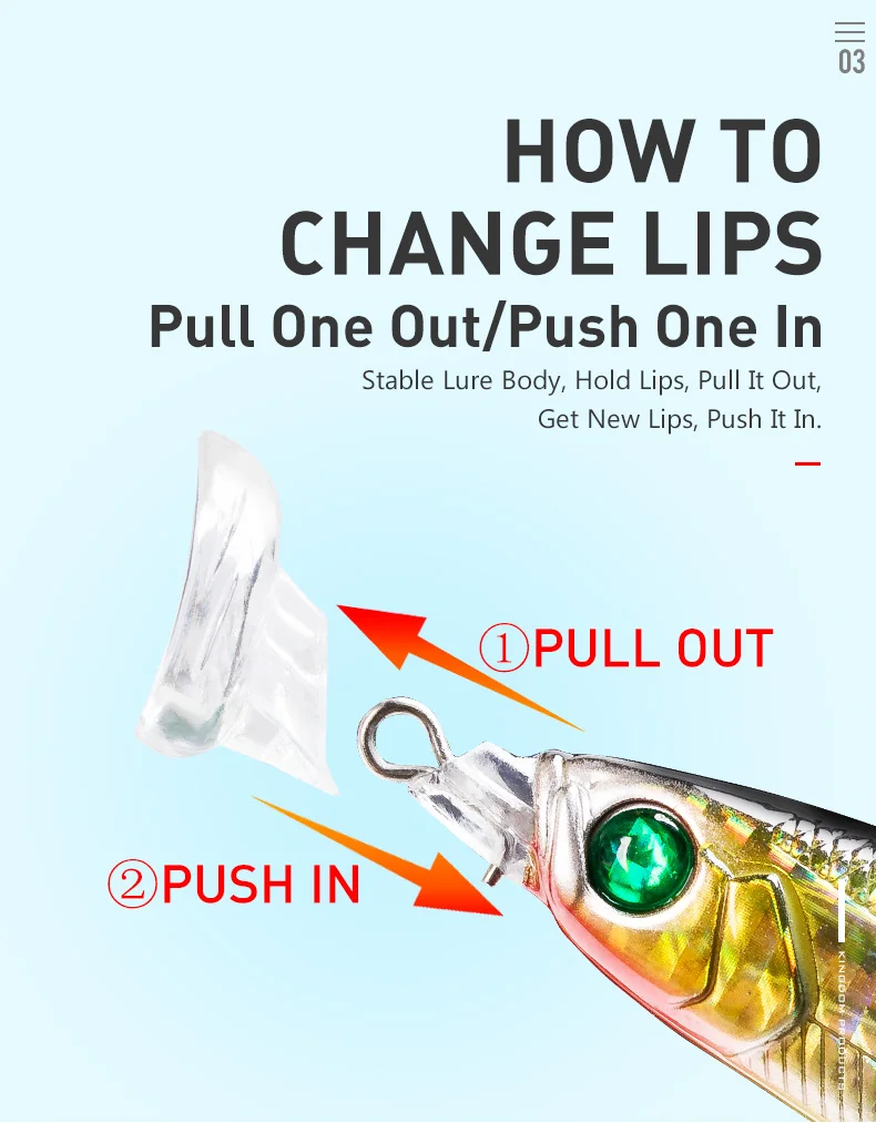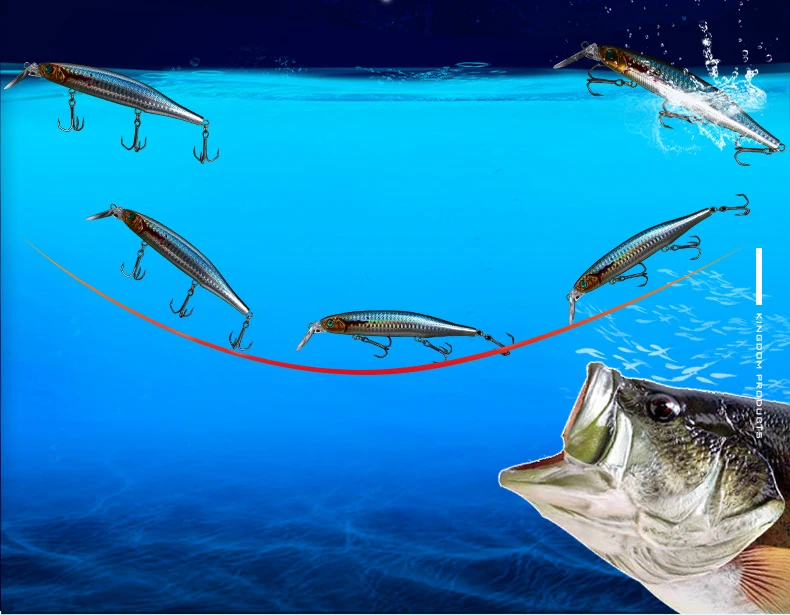 Kingdom-señuelo flotante Minnow para pesca, cebos de natación duros, 4 lápices labiales conmutables, 5 Wobblers de acción diferentes para pesca en el mar