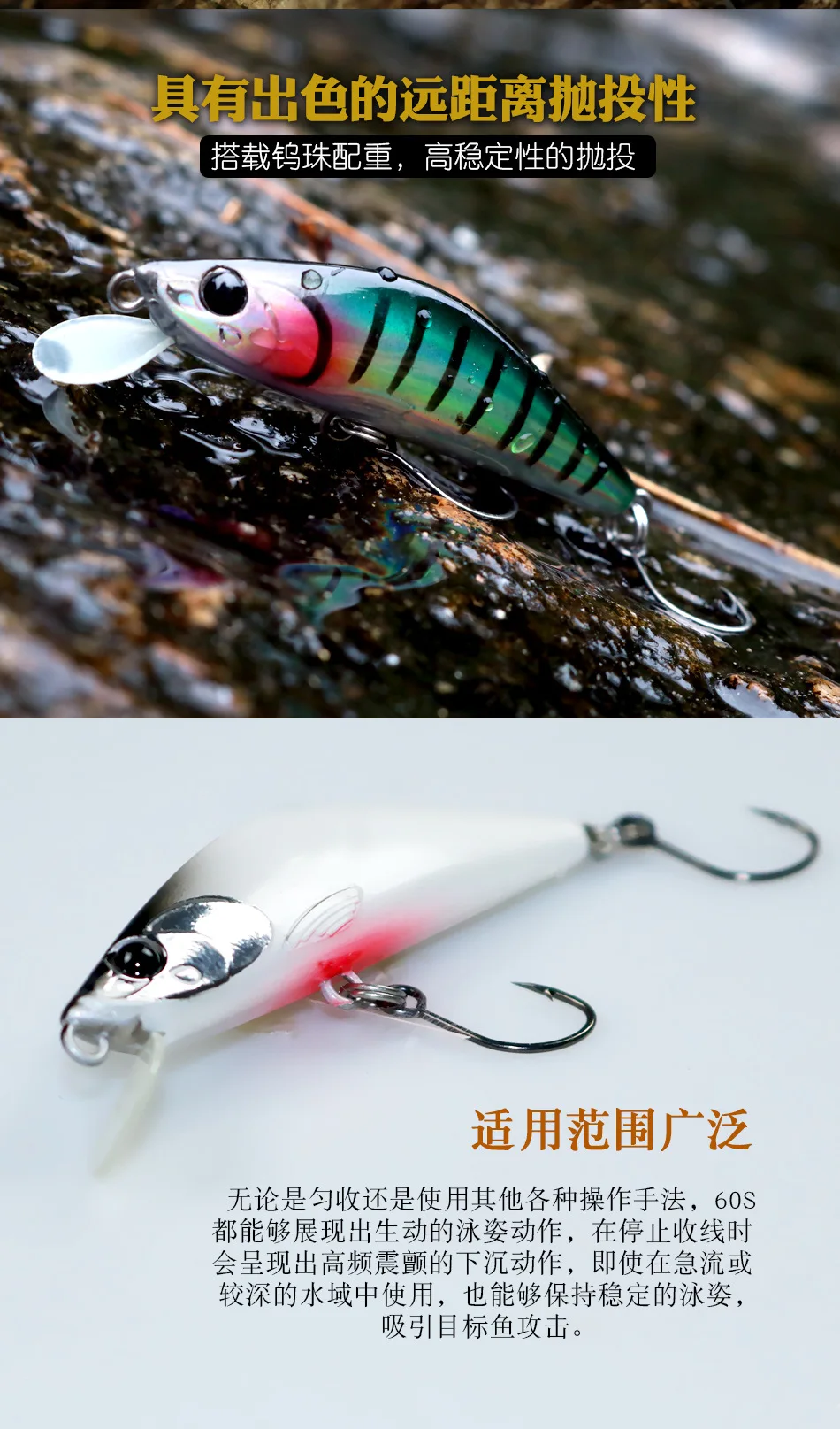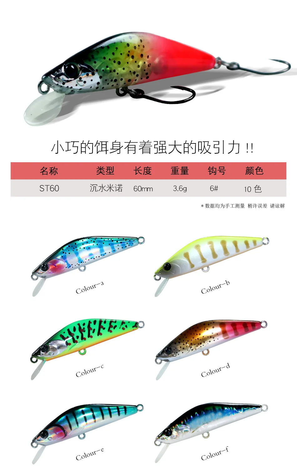 Señuelo de pececillo que se hunde, Mini cebos de pececillo duro de 3,6g/60mm, lanzamiento estable, capa de natación completa, señuelos de trucha, 1 ud.