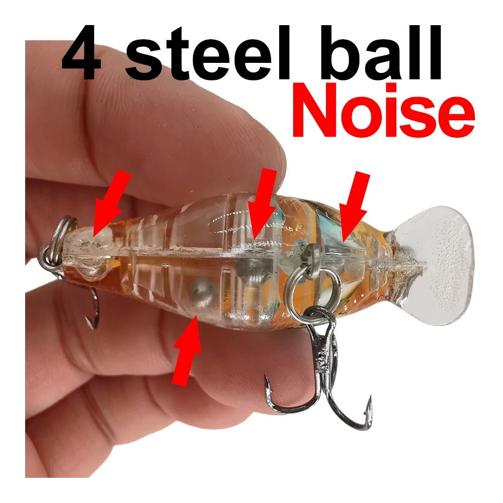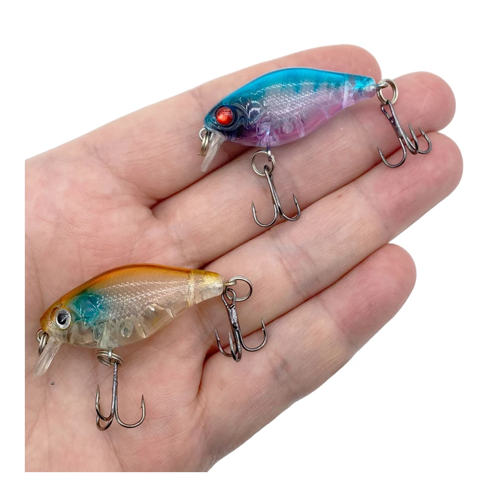 Señuelo pequeño rechoncho para pececillos, cebo de pesca que flota en el agua, ojos 3D con anzuelos trable, cebo biónico, 4,5g/1 ud.