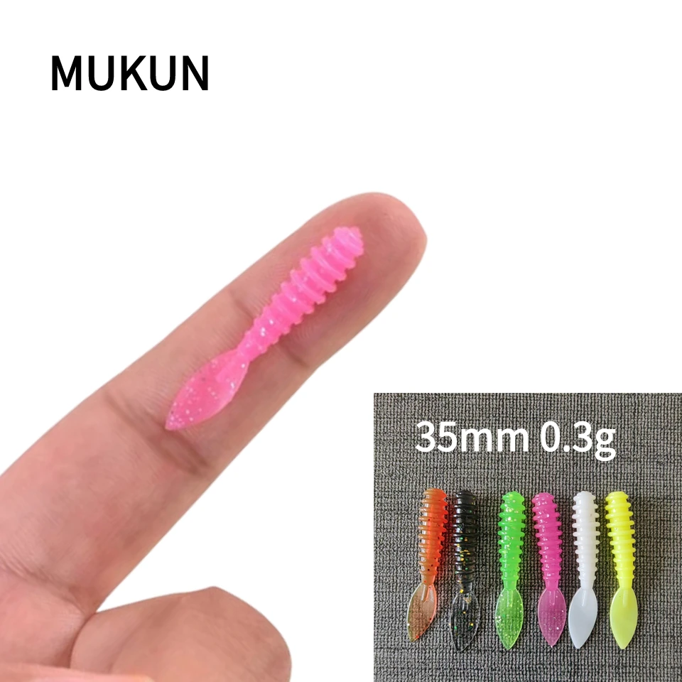 Señuelo de pesca de 10 piezas, 0,3g, 3,5 cm, mini gusano suave, camarón, Jerkbait, Océano, Roca, lubina, olor a pescado suave, Leurre Souple