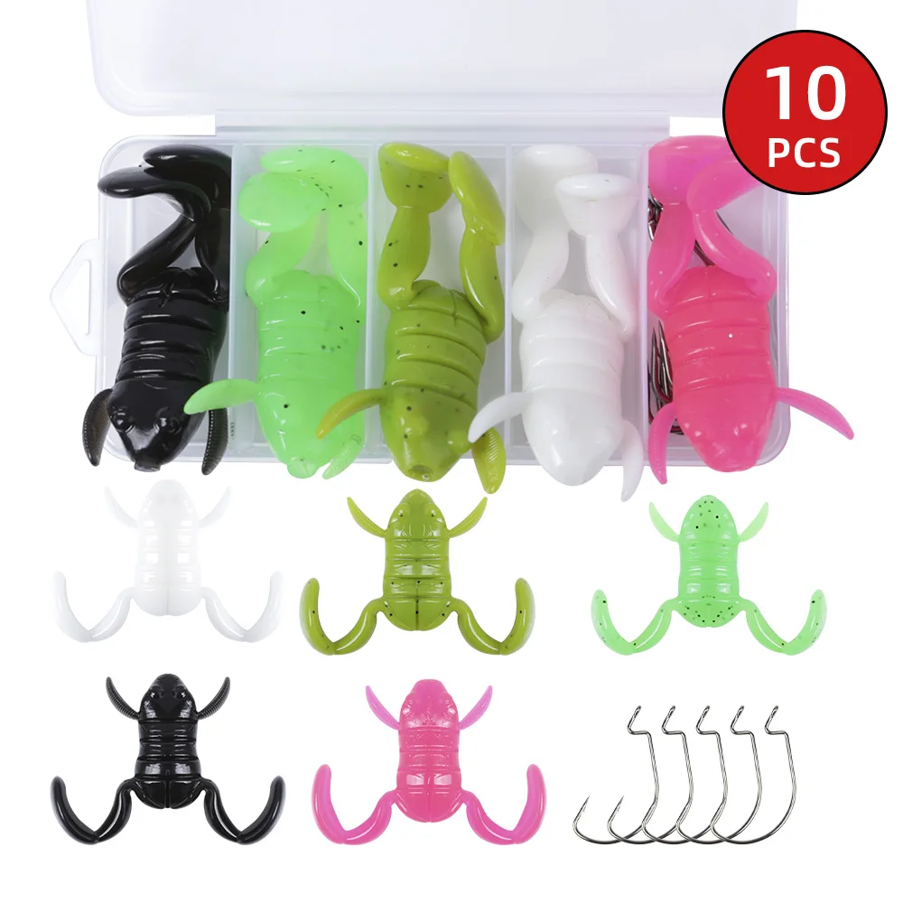 Señuelo de pesca de 10 piezas, cebo de rana blanda de alta simulación, gancho de pesca de TPE, cebo de compensación favorito de los peces
