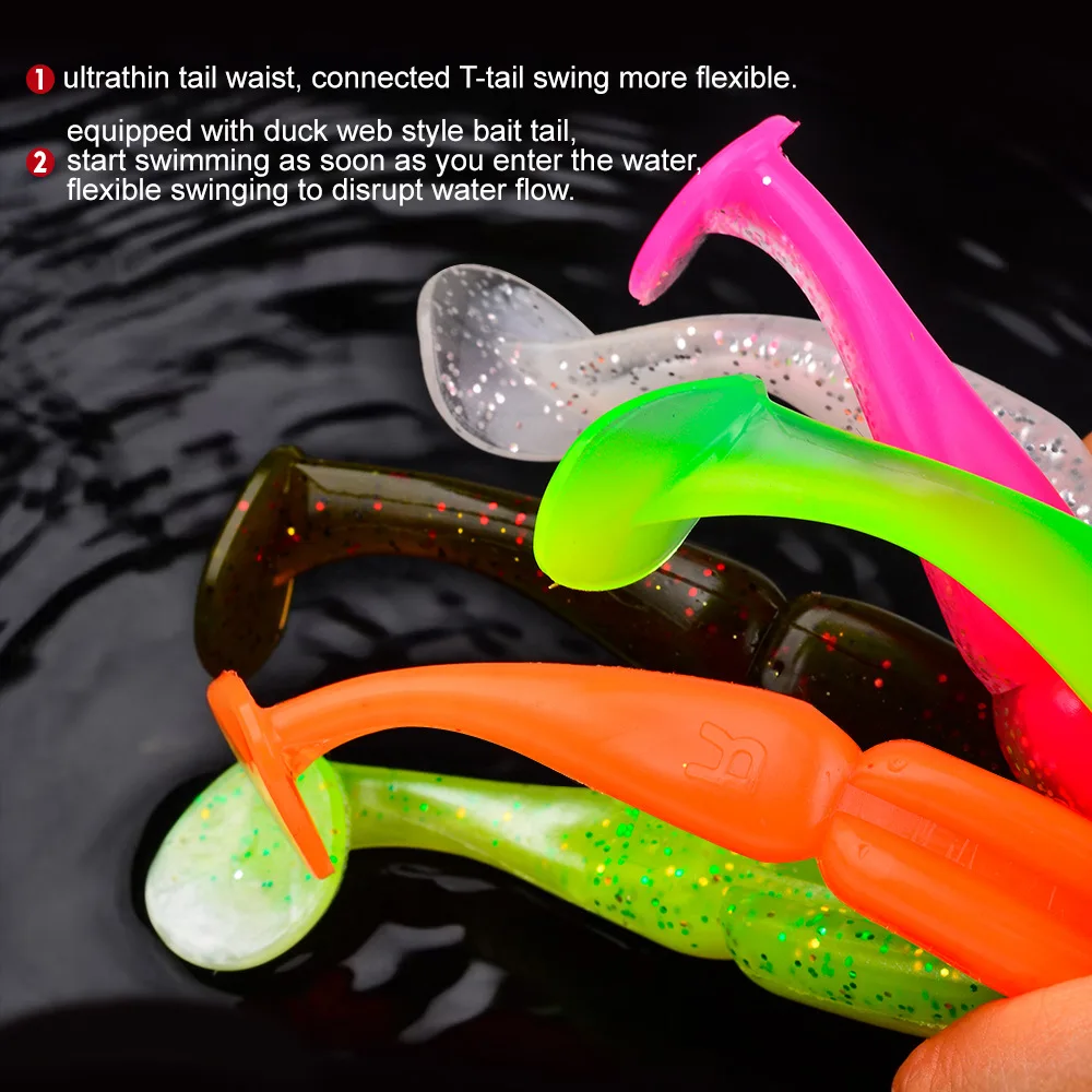 Señuelo de Pesca de 10cm y 12g, cebo de silicona suave para lubina, cola Isca T, cebo Artificial, Wobbler para Pesca de carpa y Lucio, 4 Uds.