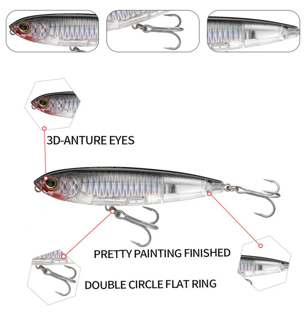 3. Los cebos tienen pintura realista y ojos 3D vívidos, hacen que el cebo parezca un pez real nadando en el agua durante la pesca.