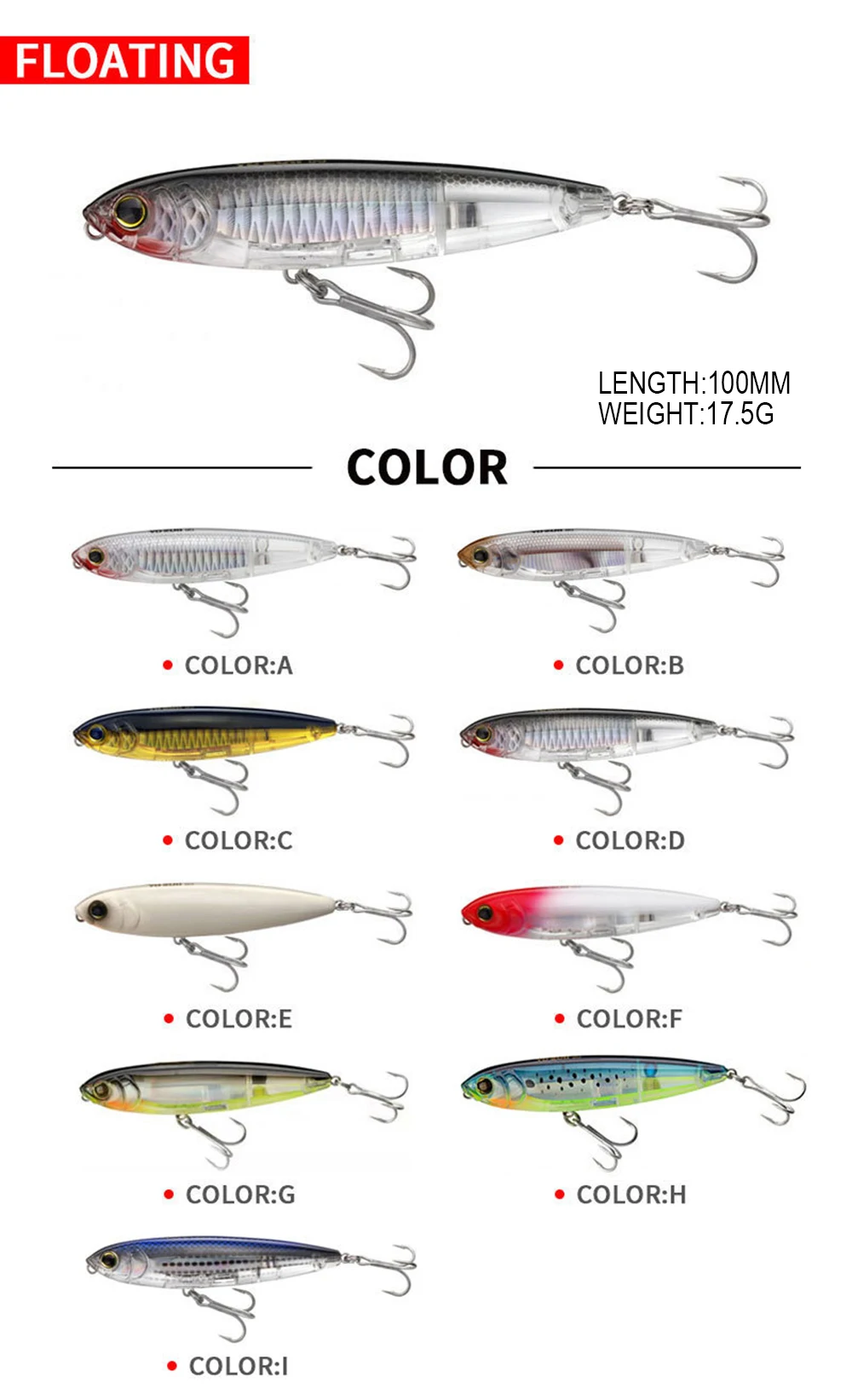 10cm 17,5g señuelo de pesca lápiz cebo Wobbler Japan3DF flotante Topwater fundición larga cebo duro Artificial Jerkbait para trucha lubina