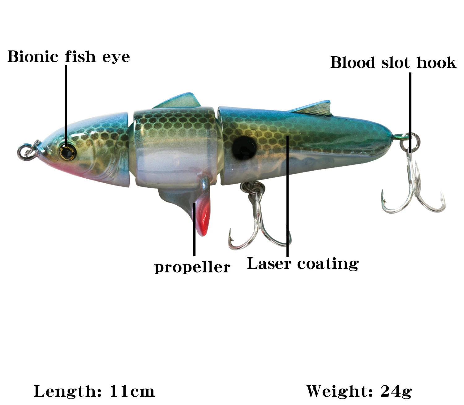 Señuelo de pesca de 11cm/24g con hélice, cebo Artificial flotante, accesorios de pesca de lubina, 10 colores