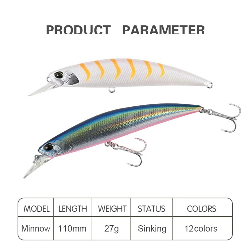 11cm 27g Fishing Lure Minnow Wobbler Long Cast Sinking Jerkbait Swimbait Ocean Artificial Hard Bait Fake Decoy Trout Bass Bait