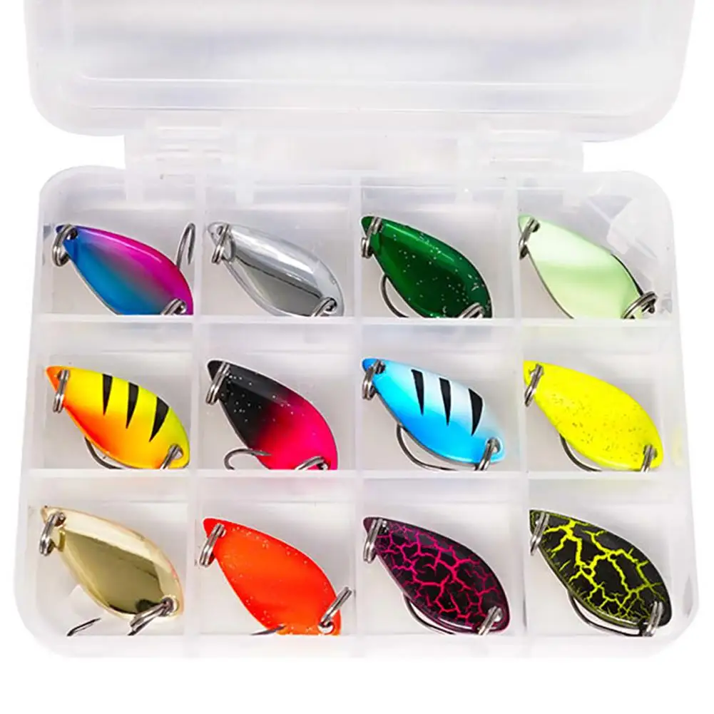 Señuelo de pesca con cuchara de 12 piezas, cebo Artificial de Metal falso con caja de almacenamiento, señuelo multicolor de fundición larga, cebo, aparejos de pesca