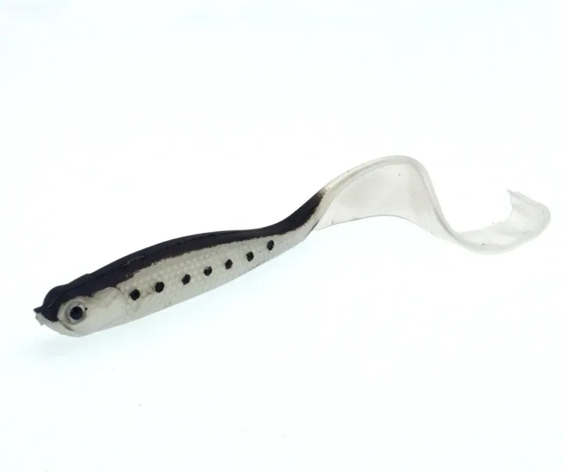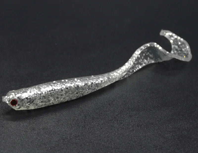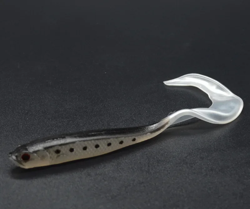 Nombre del producto: pez de cola rizada aplicada abierta Tamaño del producto: aproximadamente 12,5 centímetros por pieza Peso del producto: alrededor de 5,5 gramos por pieza Colores del producto: espalda amarilla verde negra, cabeza roja y cuerpo blanco, rosa, luminoso, espalda negra y puntos negros, transparente con cebollas. Material del producto: PVC