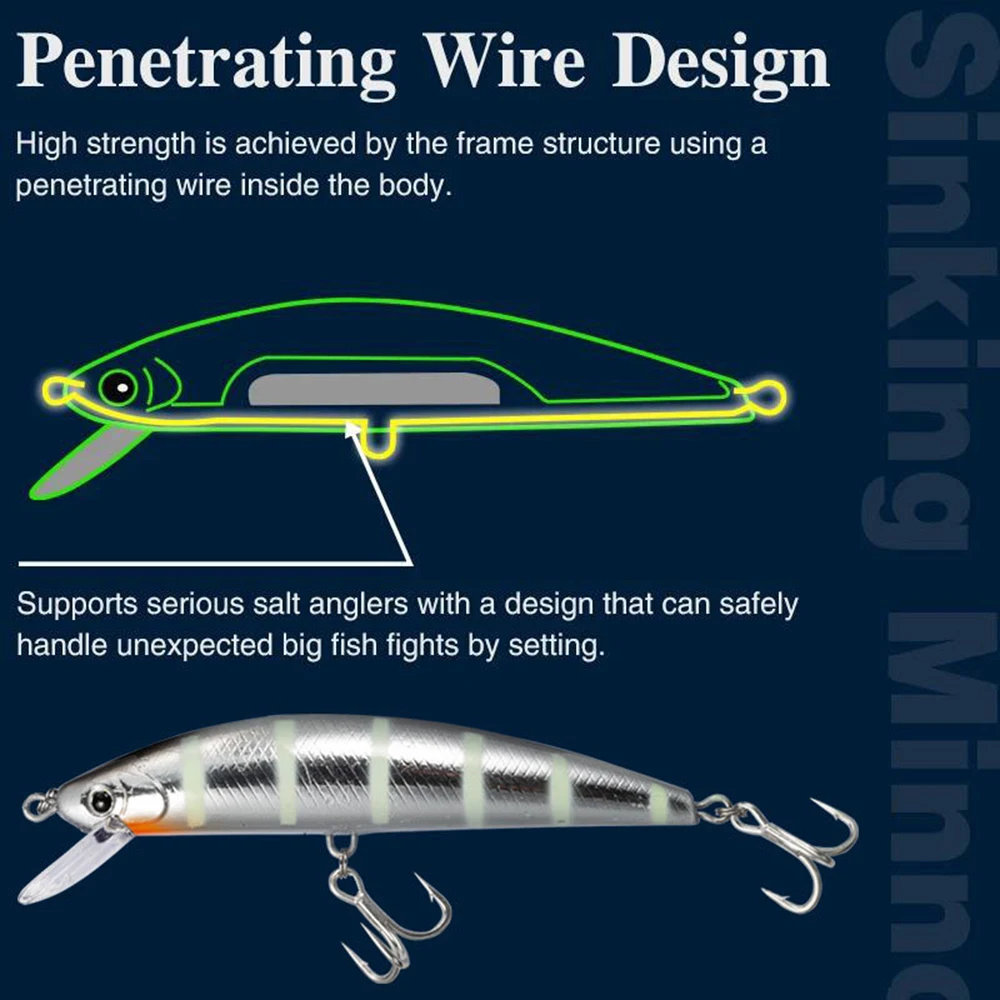 6. Bolas de metal: Bolas de acero inoxidable en el interior, para mantener el equilibrio del señuelo de pesca, para la mayor distancia de lanzamiento.