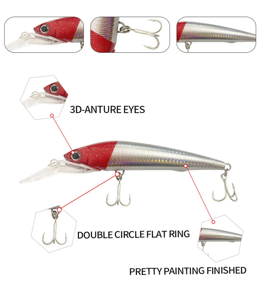 3. Los cebos tienen pintura realista y ojos 3D vívidos, hacen que el cebo parezca un pez real nadando en el agua durante la pesca.