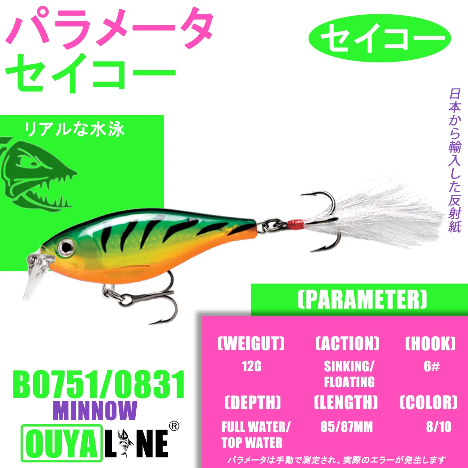 Señuelo De Pesca Minnow 12g 85/87mm Wobbler cebo duro Artificial Trolling Tackle Accesorios De Pesca para Bass Pike Perch Fish Leurre