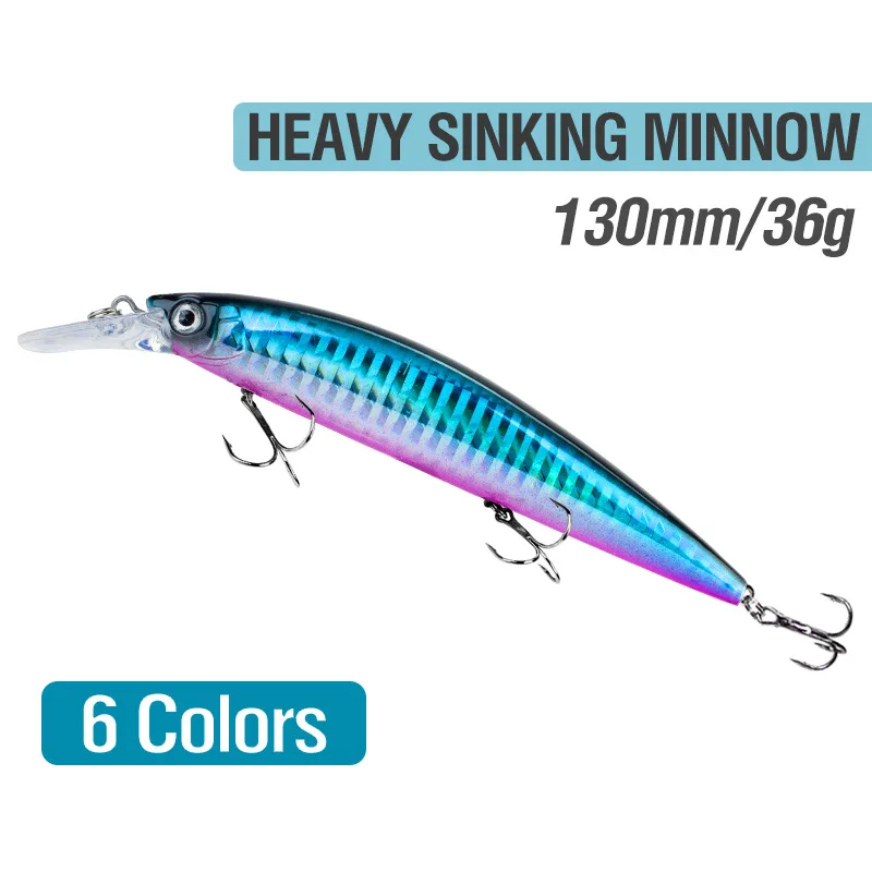 Señuelo de pesca de 130mm y 36g, pececillo pesado que se hunde, con 3 anzuelos triples, accesorios de agua dulce y salada, cebo Artificial con revestimiento láser