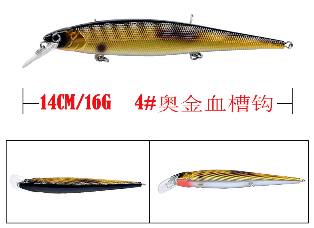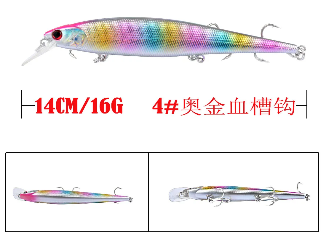 Señuelo de pesca de 14cm y 16g, cebo duro Crankbait Minnow, Crankbait Peche Bass, aparejos de pesca de curricán, cebos artificiales con ojos 3D, nuevo, 1 unidad
