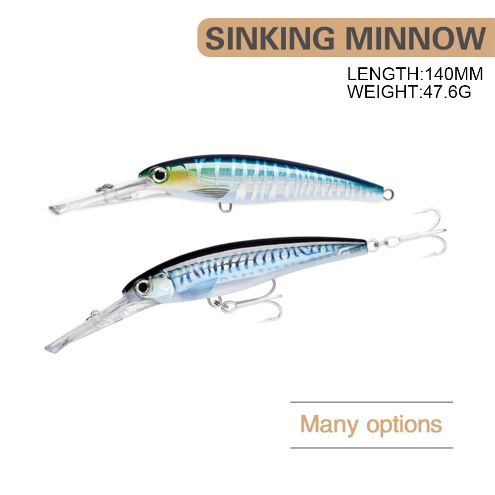 14cm 47,6G señuelo de pesca Minnow Wobbler tiro largo hundimiento lento cebo duro Artificial Jerkbait Swimbait pesca en el océano cebo de lubina