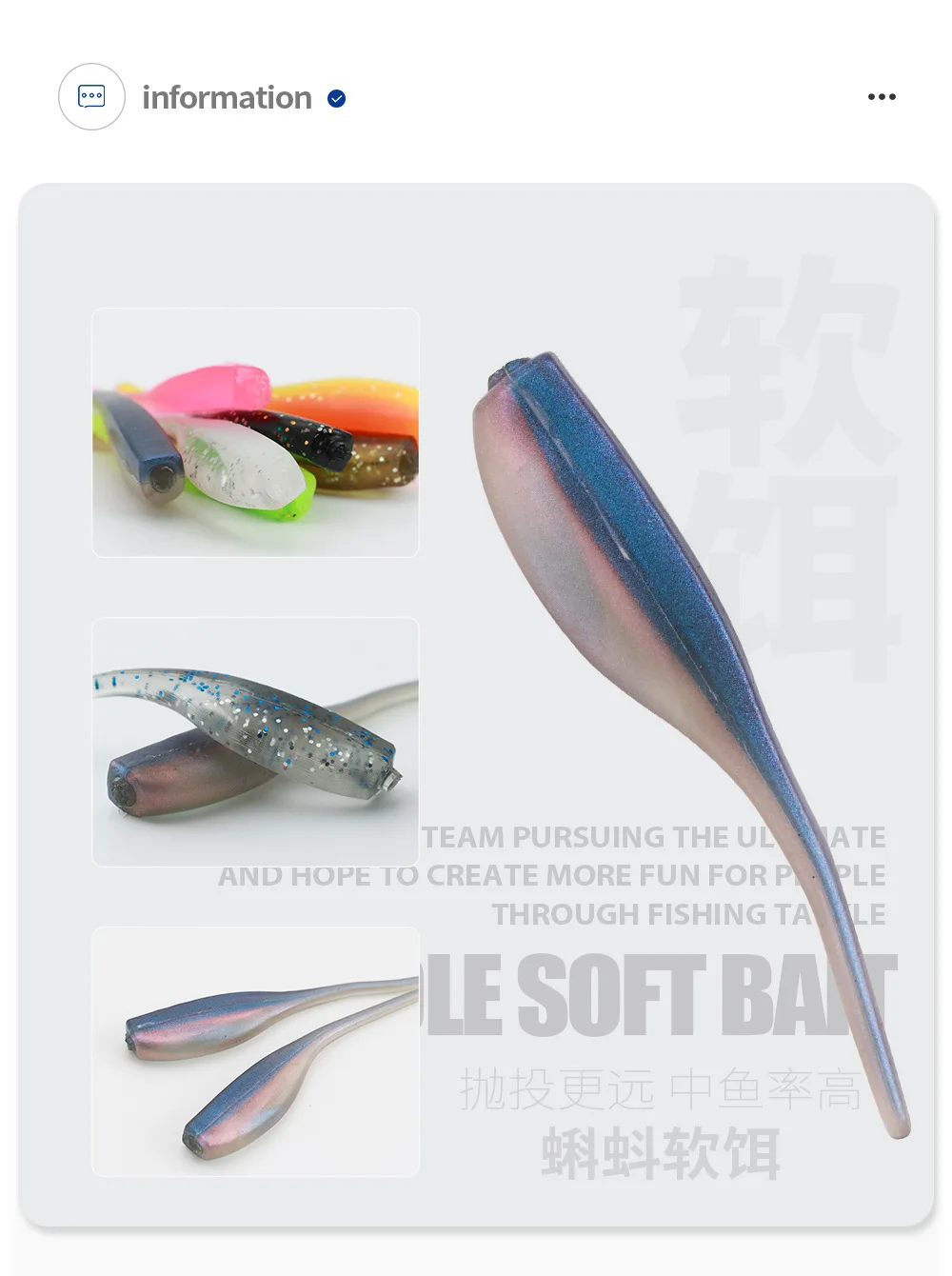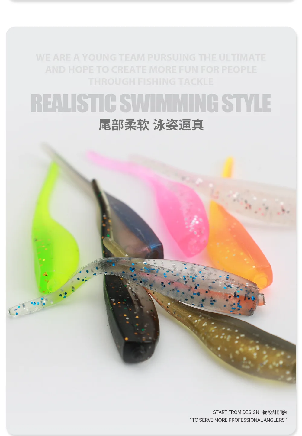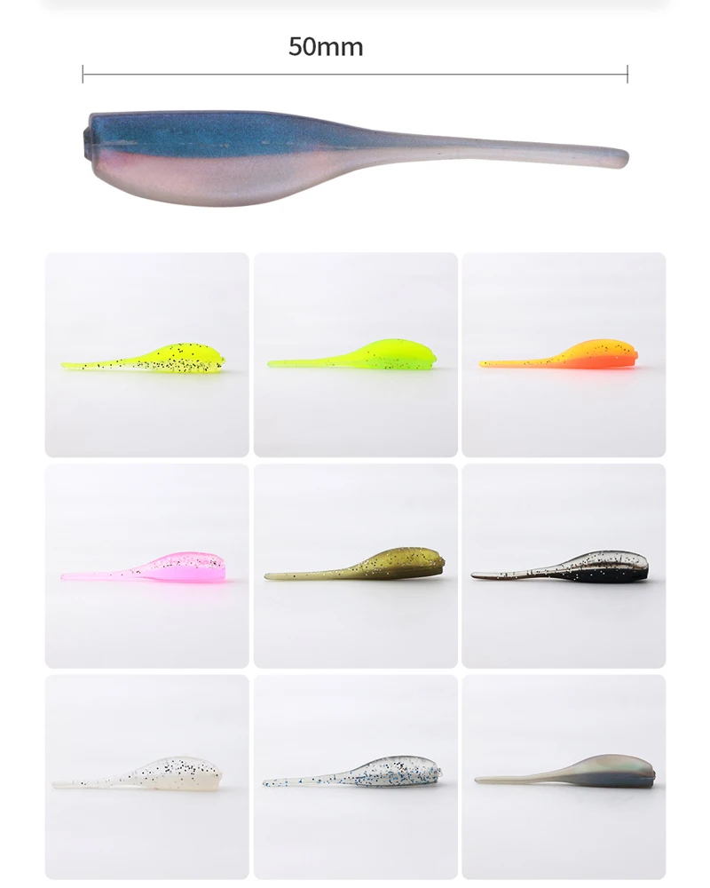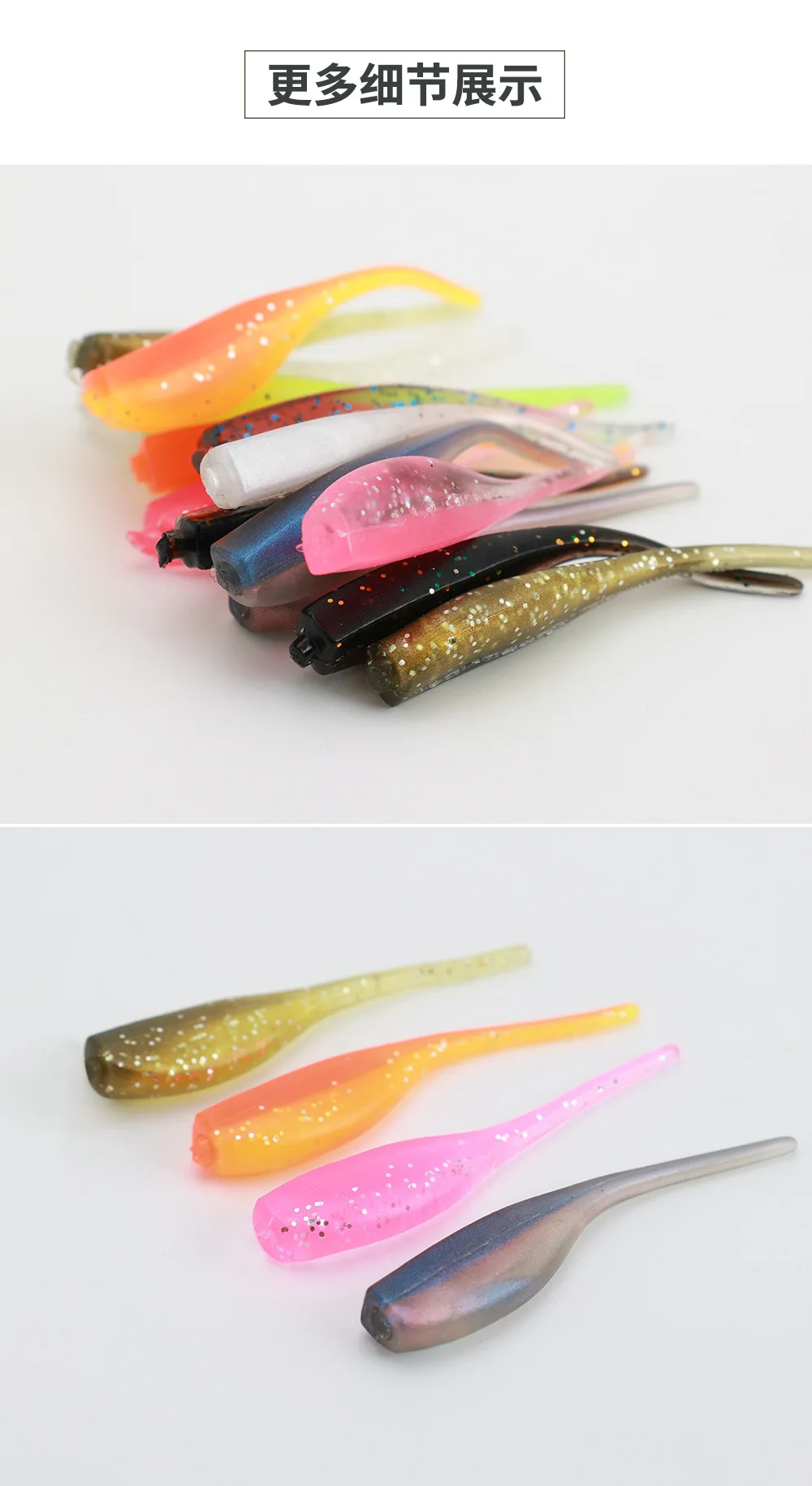 Señuelo de pesca 20 piezas, cola de aguja de doble Color, 50mm, 1g, cebo Artificial de silicona, gusano, aparejos Wobblers