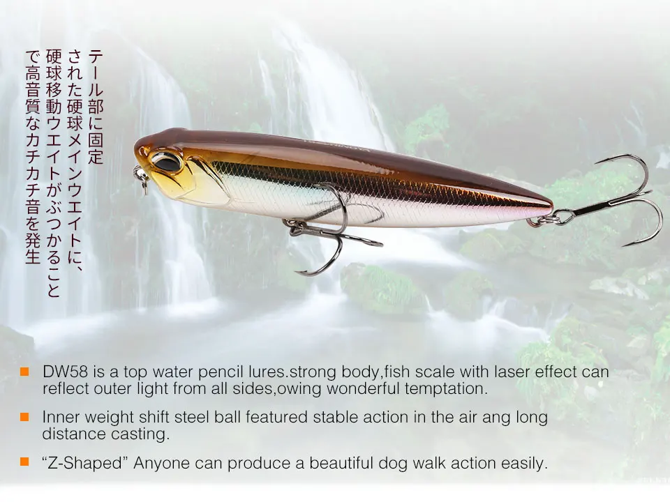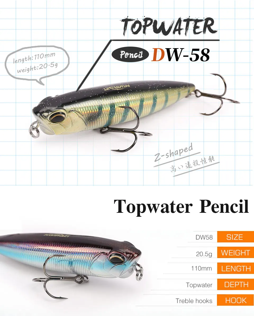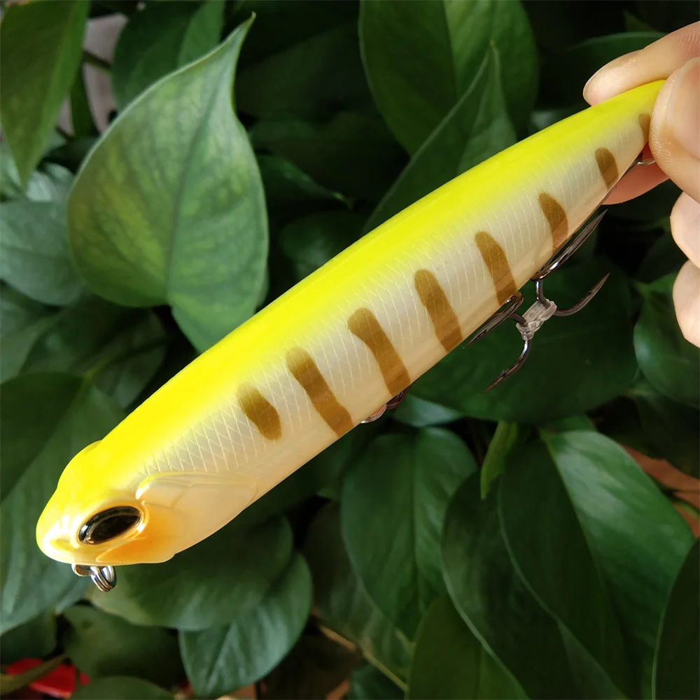 Señuelo de pesca de 3 piezas DW58, lápiz flotante de agua superior, Wobblers 110mm 20,5g, señuelo de lubina, Swimbait, cabeza de serpiente, cebo duro Artificial