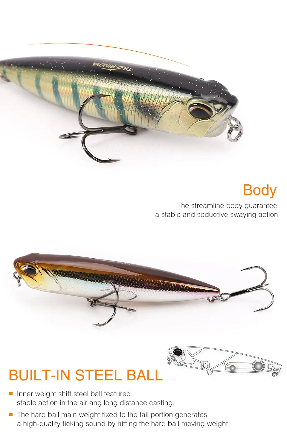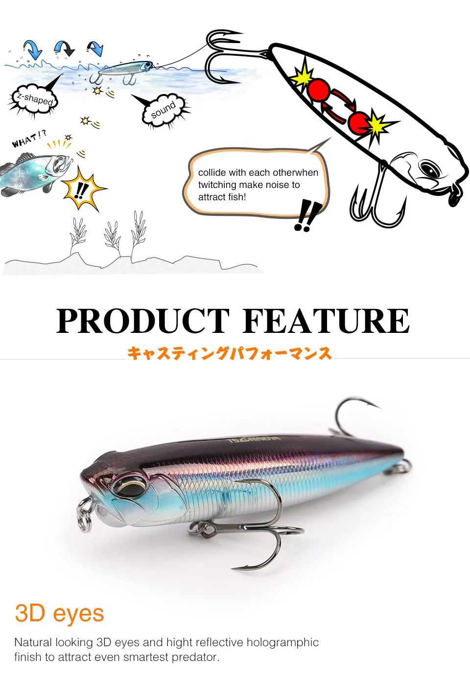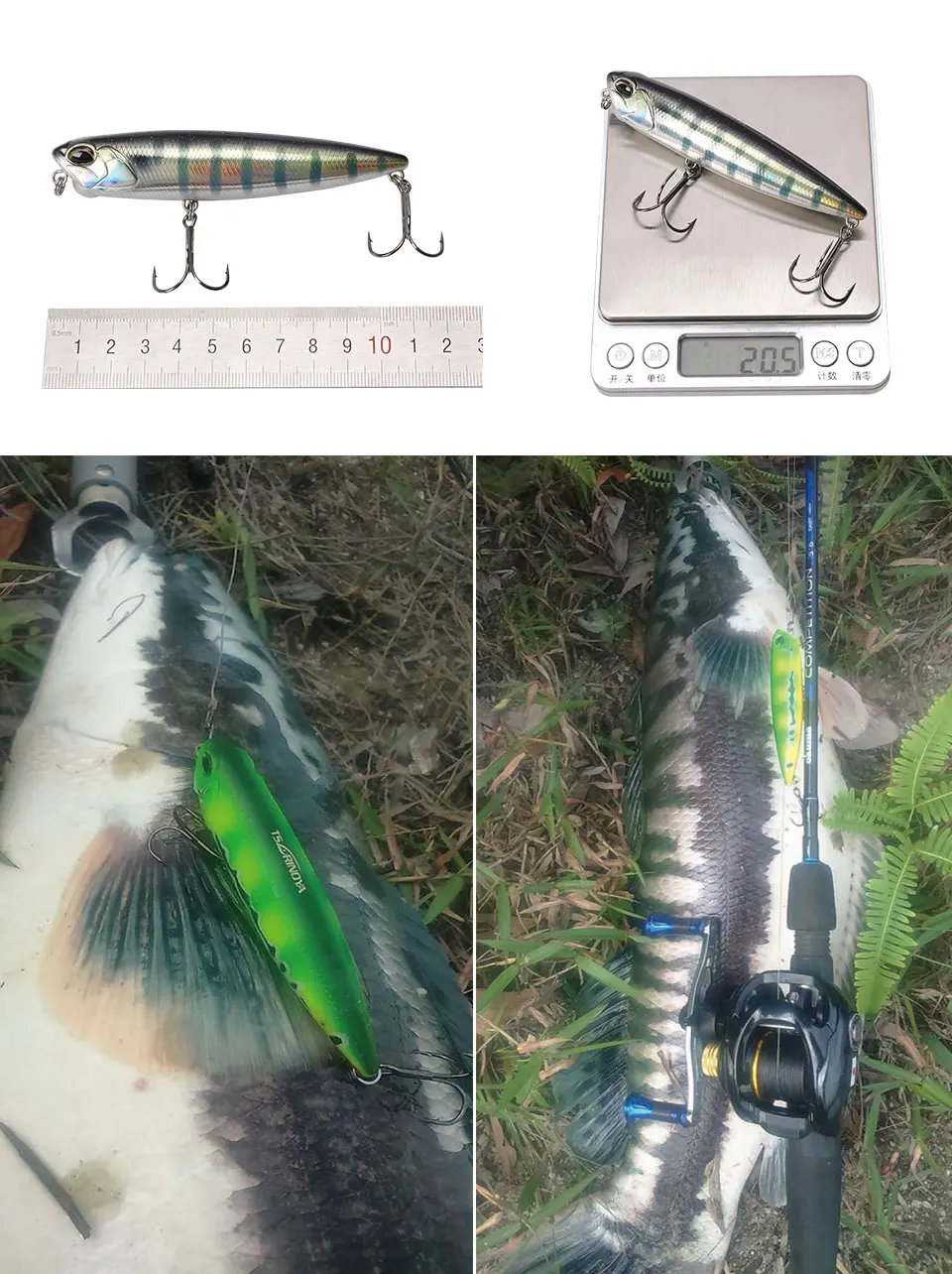 Señuelo de pesca de 3 piezas DW58, lápiz flotante de agua superior, Wobblers 110mm 20,5g, señuelo de lubina, Swimbait, cabeza de serpiente, cebo duro Artificial