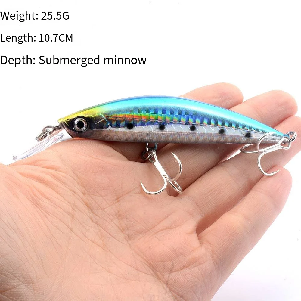 Señuelo de pesca de 33G/10,8 CM, señuelo que se hunde de liberación de pececillo para aparejos de cebo duro de fundición larga para pesca con mosca, 1 ud.
