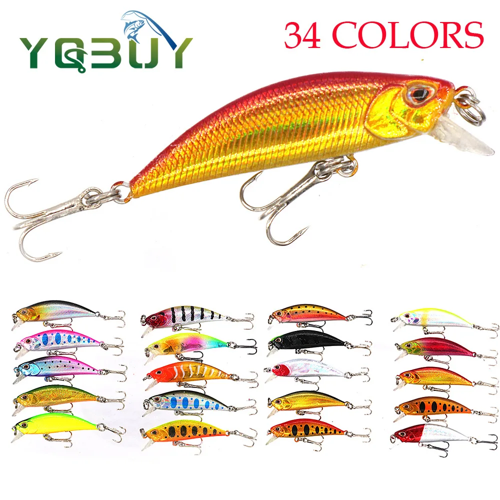 Señuelo de pesca de 34 colores, 5g/5cm, pececillo que se hunde, ojos 3D, curricán láser, cebo de plástico Buzz con 2 anzuelos Trible