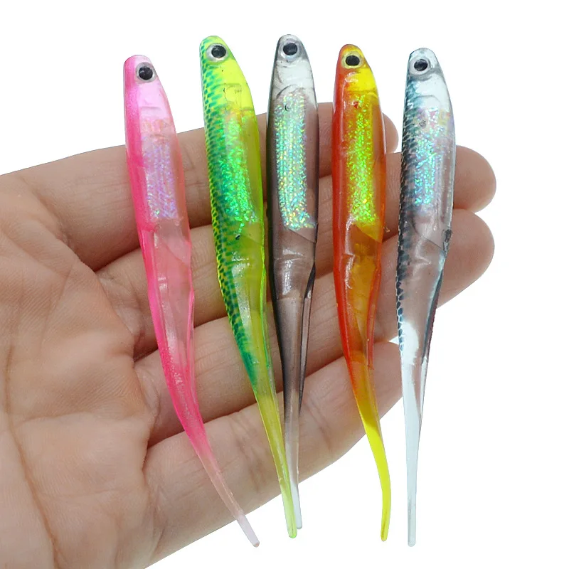 Señuelo de pesca 3D Arco Iris pez cebo suave papel de aluminio interior 3G/10cm gusano señuelos artificiales