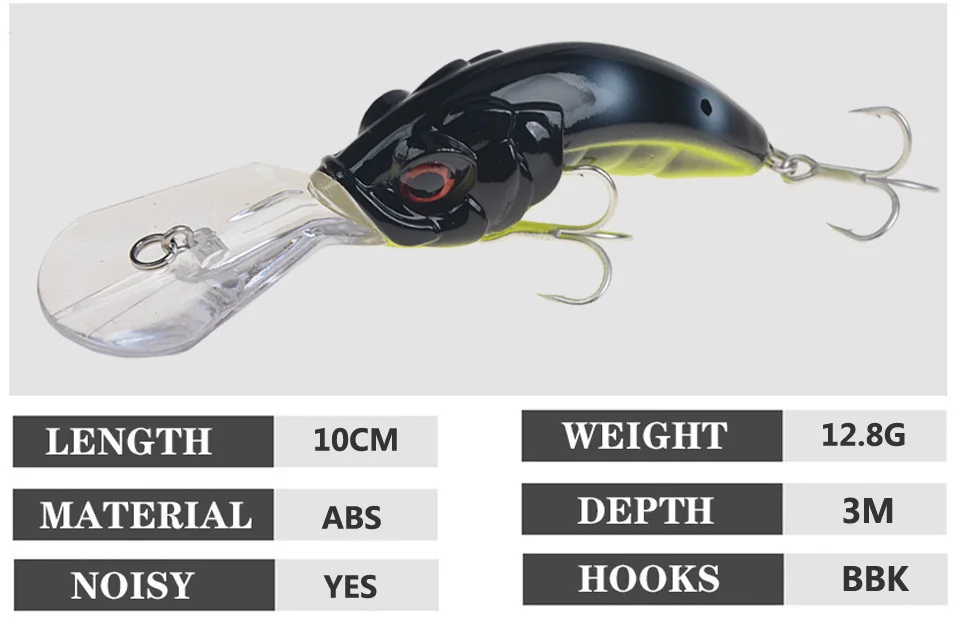 Señuelo de pesca de 3m para buceador de aguas profundas, cebo Artificial duro, Crankbait, Wobbler, anzuelo triple, alta calidad, 10cm, 12,8g, 1 lote