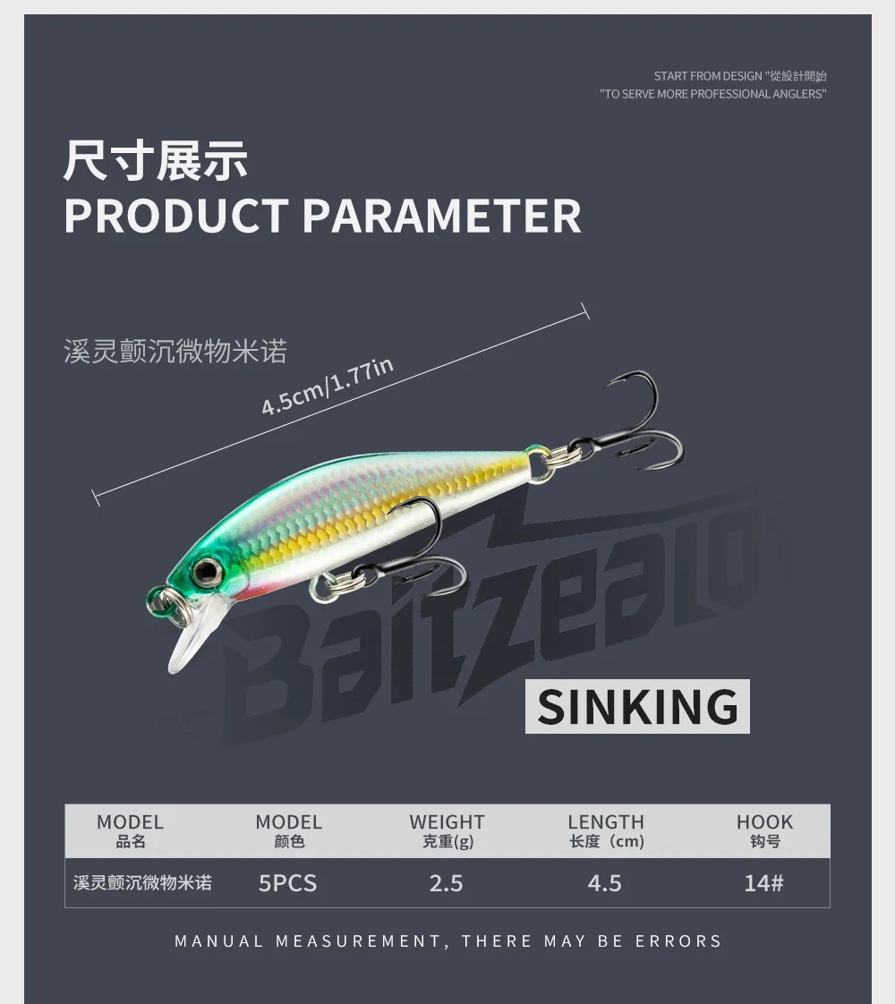 Señuelo de pesca de 4,5 cm y 2,5g, cebo duro Artificial de fundición larga, Micro Minnow, Wobbler, Jerkbait, pequeño, para trucha y lubina