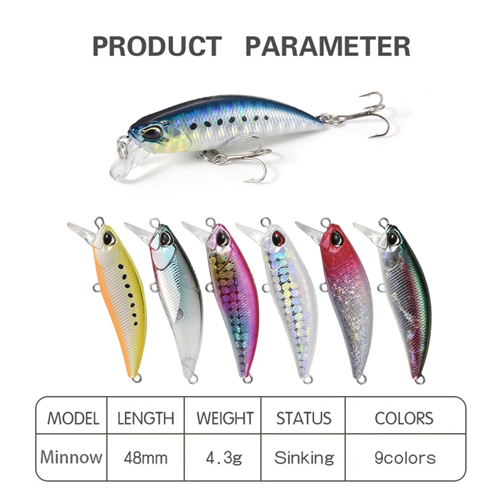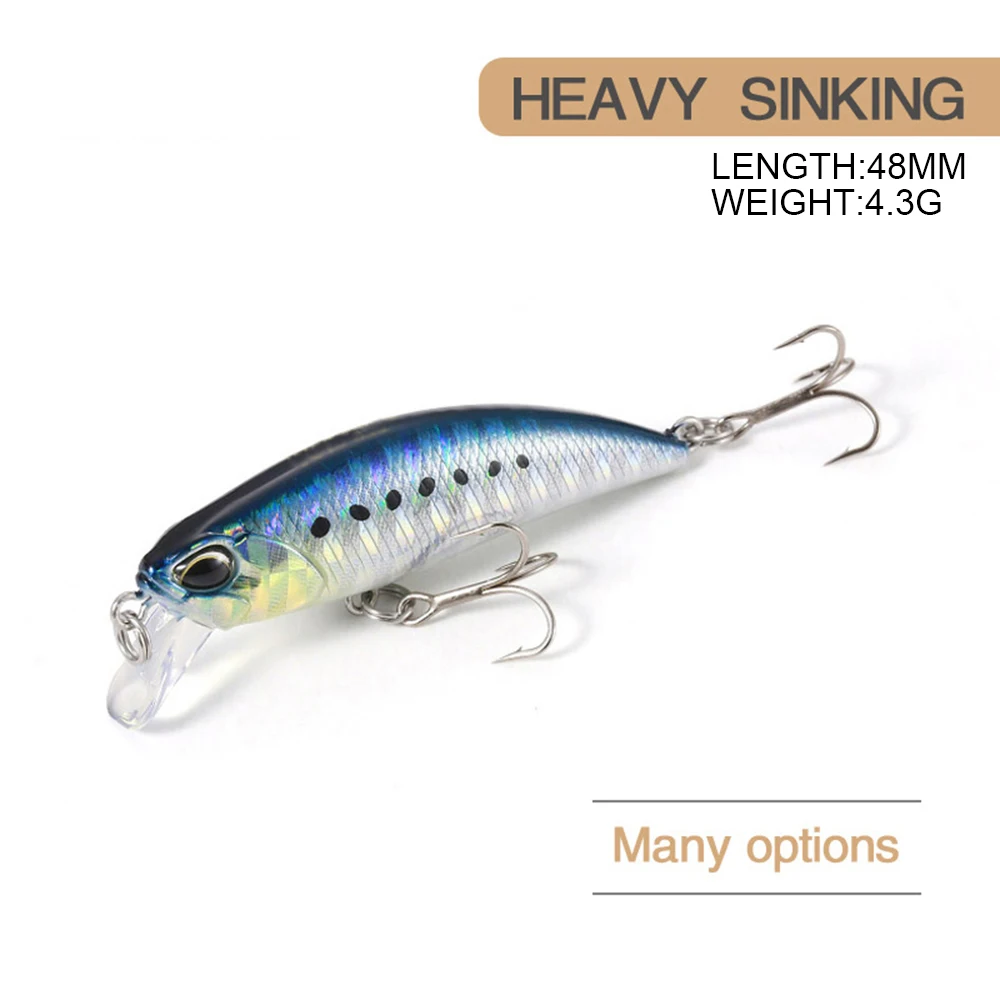 4.8cm 4.3g Fishing Lure Minnow Wobbler Spearhead 48HS Heavy Sinking Jerkbait Swimbait Artificial Hard Bait Trout Bait Bass Bait