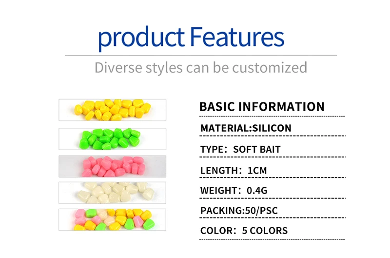 50 Señuelos de Pesca de los granos de maíz Topwater 0,4g/1cm Artificial cebo suave Wobblers