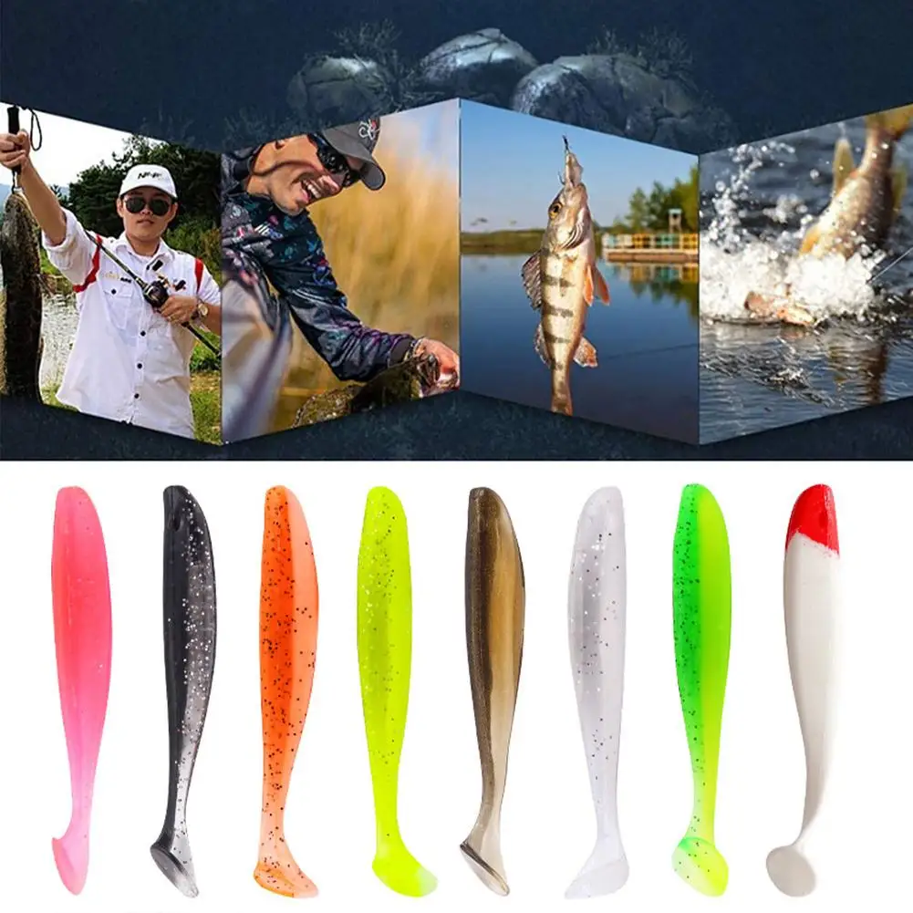 50 piezas de señuelo de pesca suave de dos colores suave cola en T cebo Artificial multicolor biónico cebo falso accesorios de aparejos de pesca